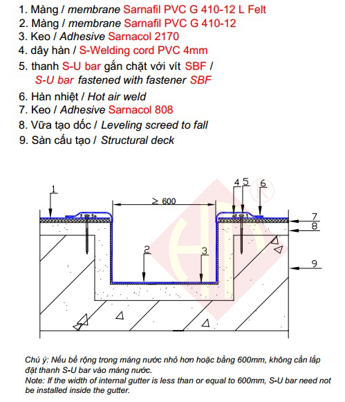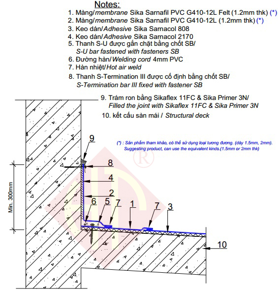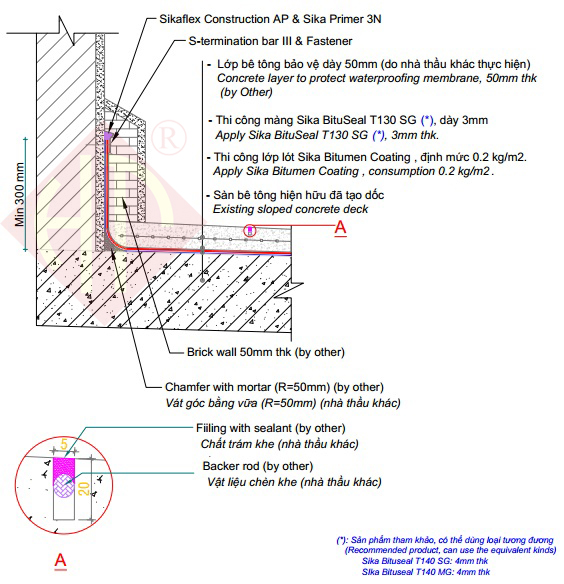 Chống thấm cho mái phẳng, có phủ lớp bảo vệ hoặc thi công các lớp hoàn thiện lên trên.