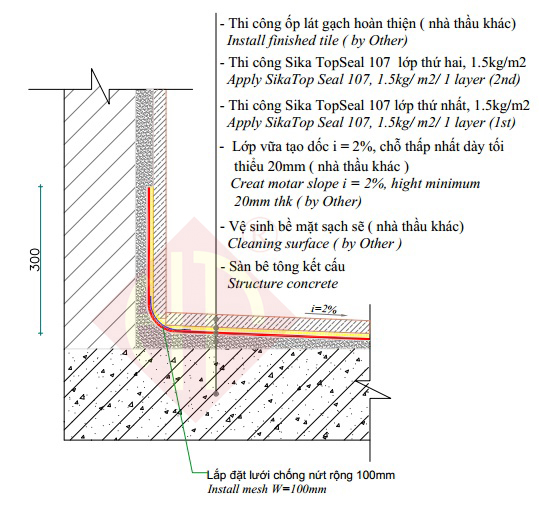 Chống thấm cho Balcony có lớp bảo vệ, hoặc dán gạch.