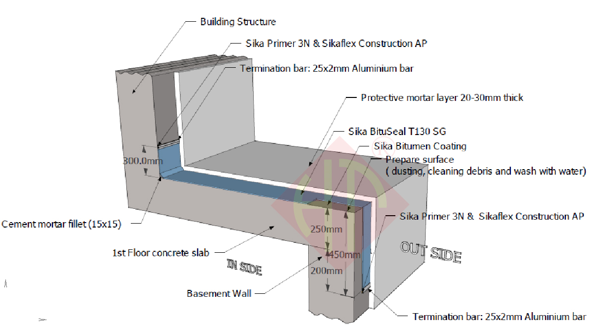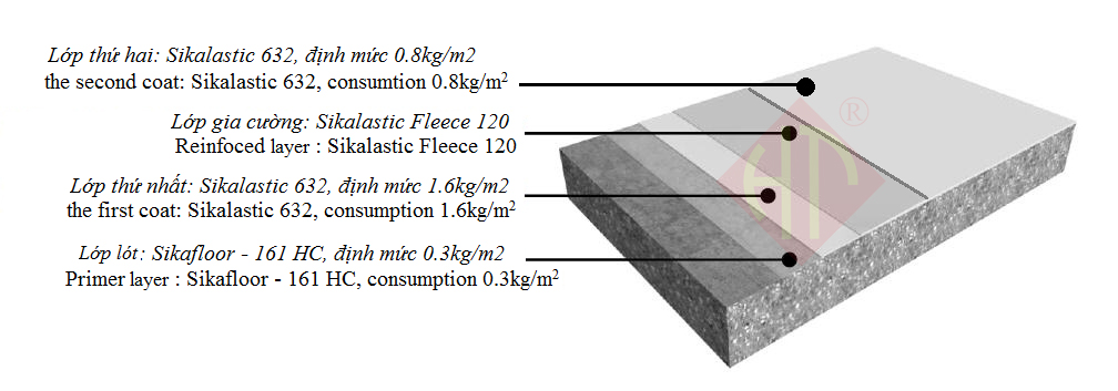 Chống thấm cho mái phẳng, có phủ lớp bảo vệ hoặc thi công các lớp hoàn thiện lên trên.